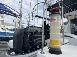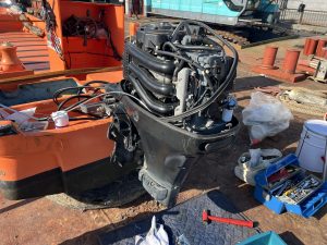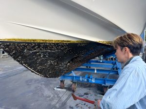 夢の島マリーナに到着後、船底シートの中骨パイプを戻して、完了です🙆♂️