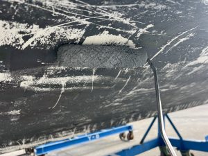 ケレン後、下地の剥がれ箇所が多くあったので、下地塗装です
